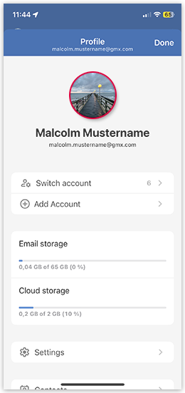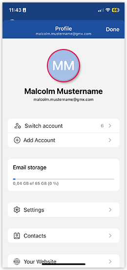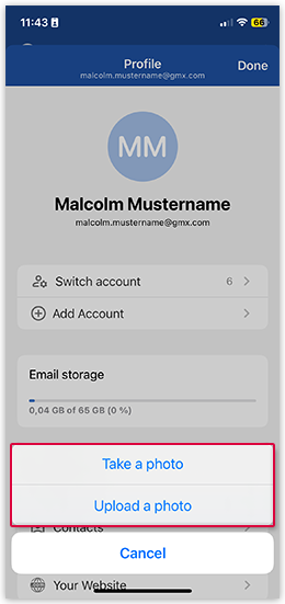 You have the option to add a profile picture in the GMX Mail App for iOS. This